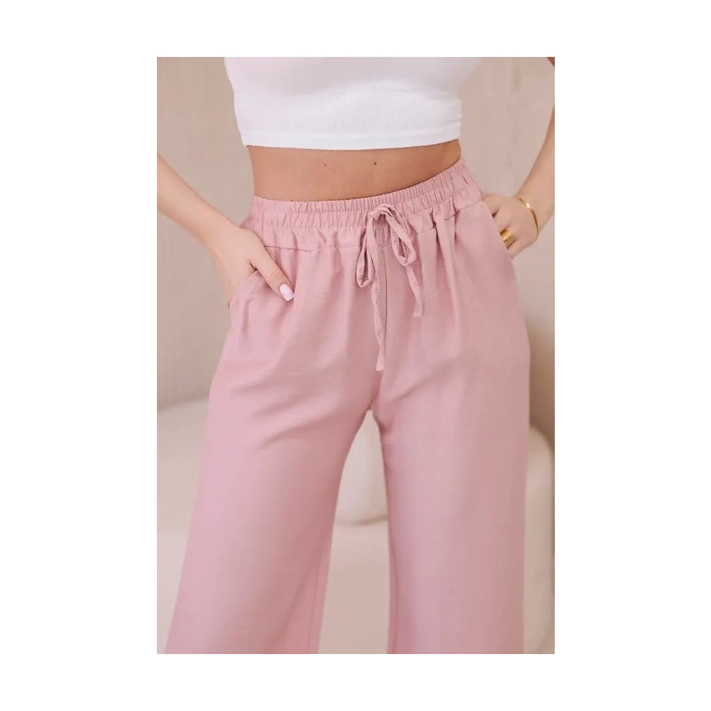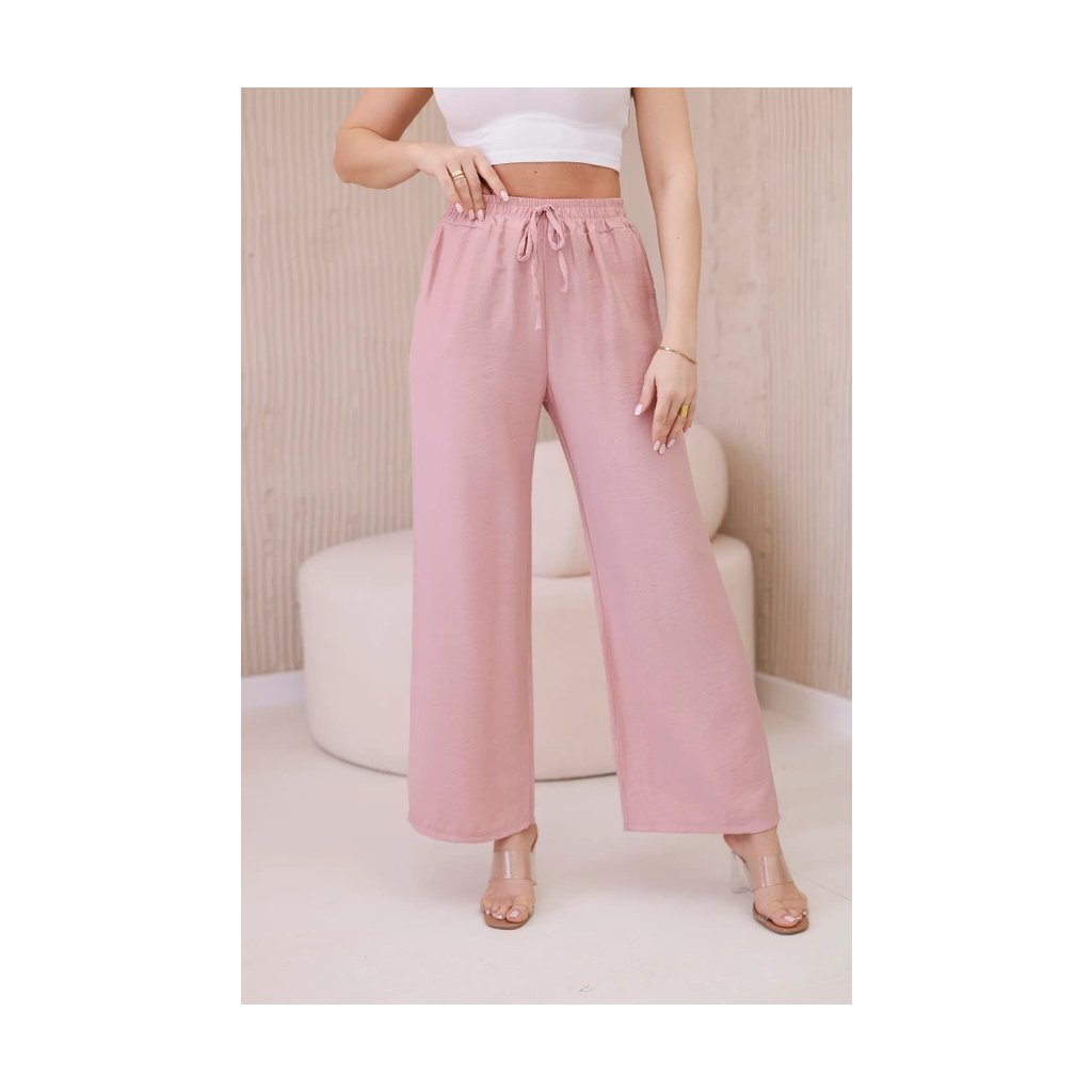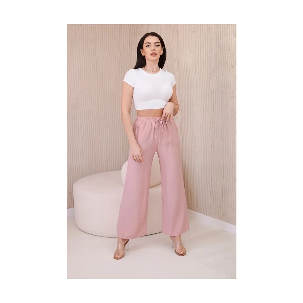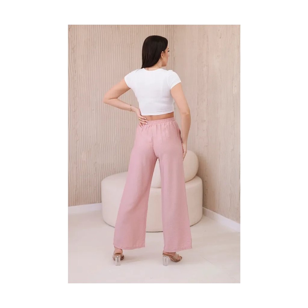 Viskózové nohavice so širokými nohavicami tmavá púdrová ružová