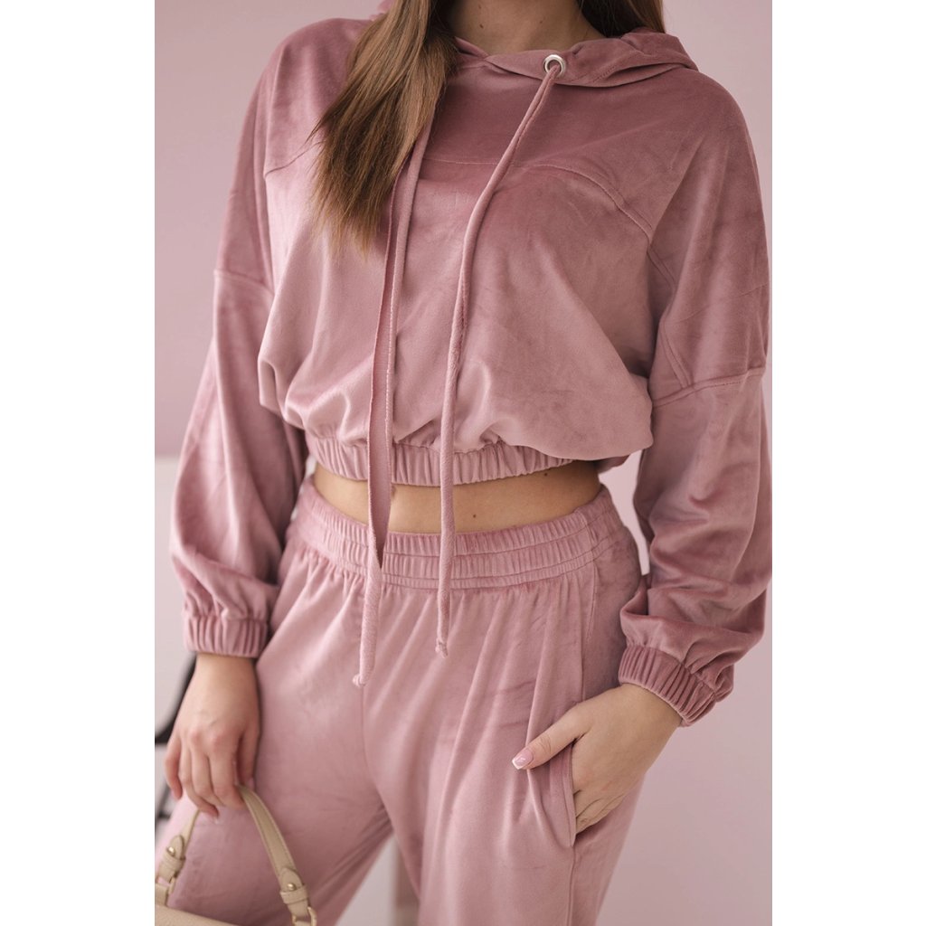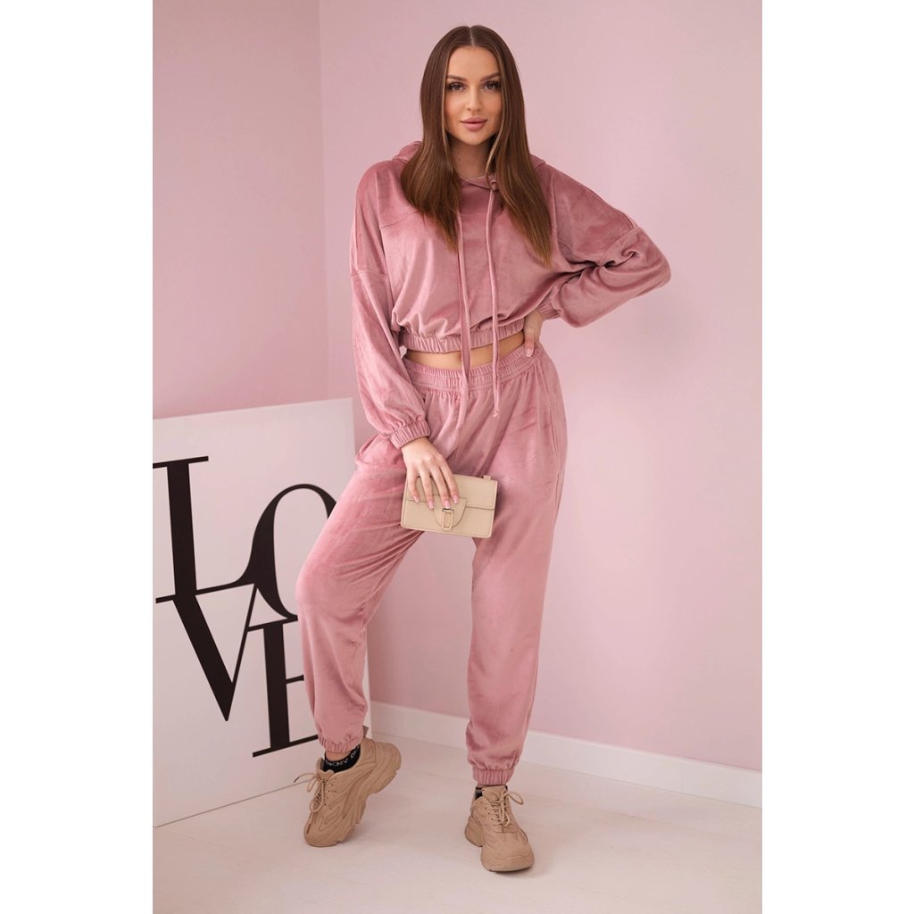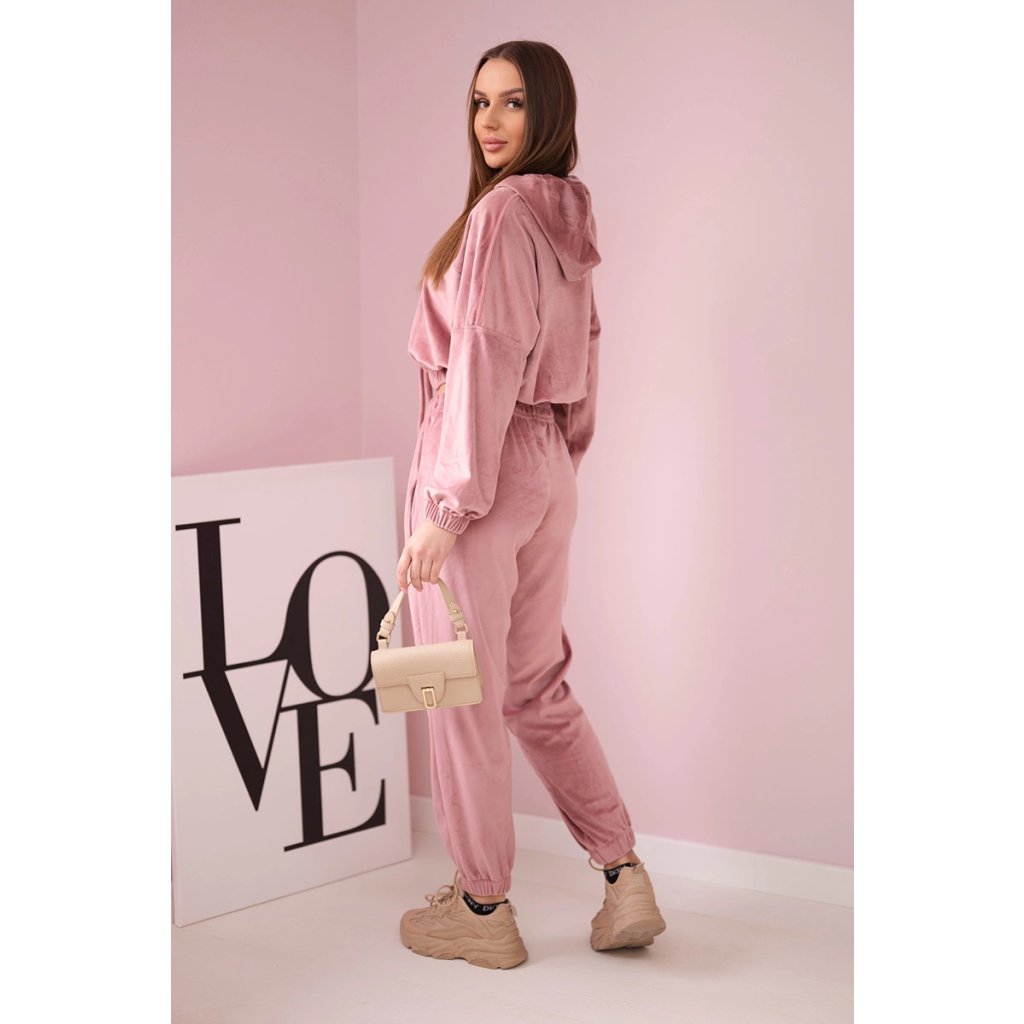 Zamatová súprava s kapucňou tmavá púdrovo ružová