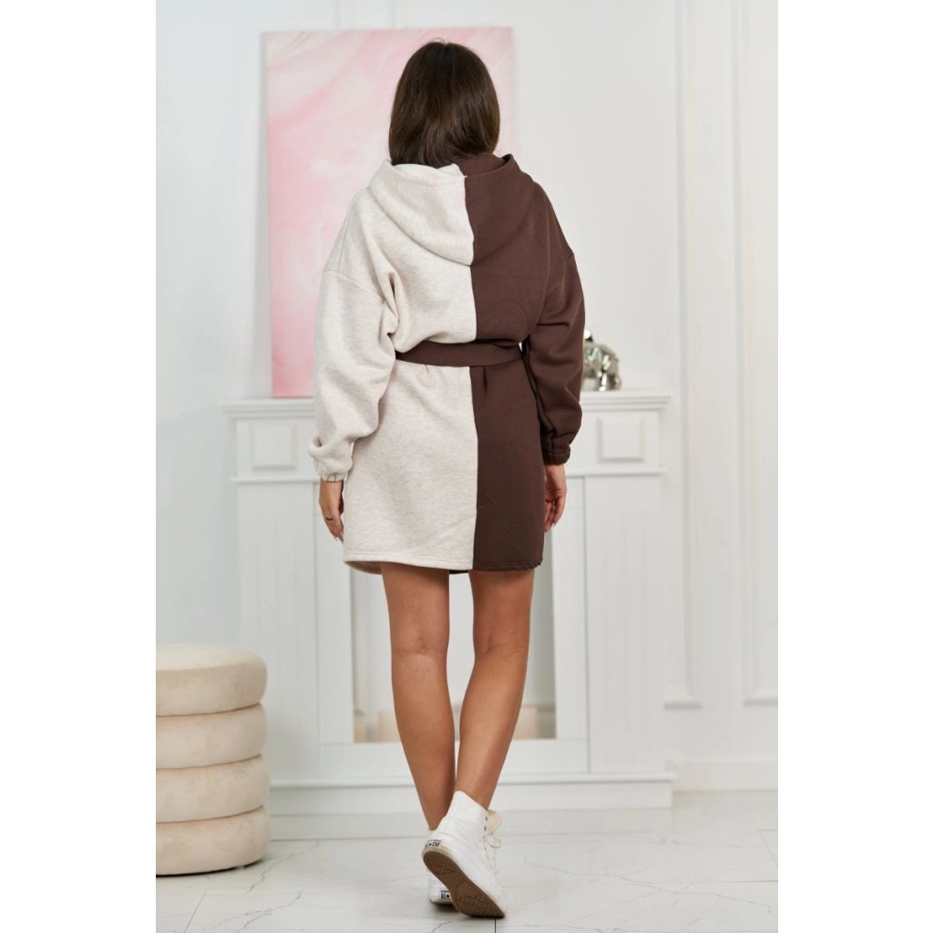 Zateplená dvojfarebná mikina hnedá + béžový melír