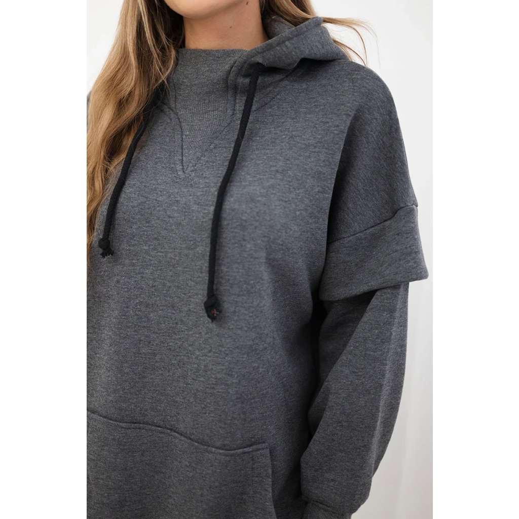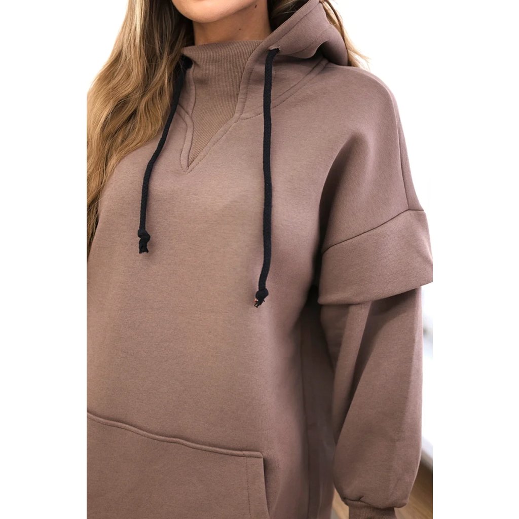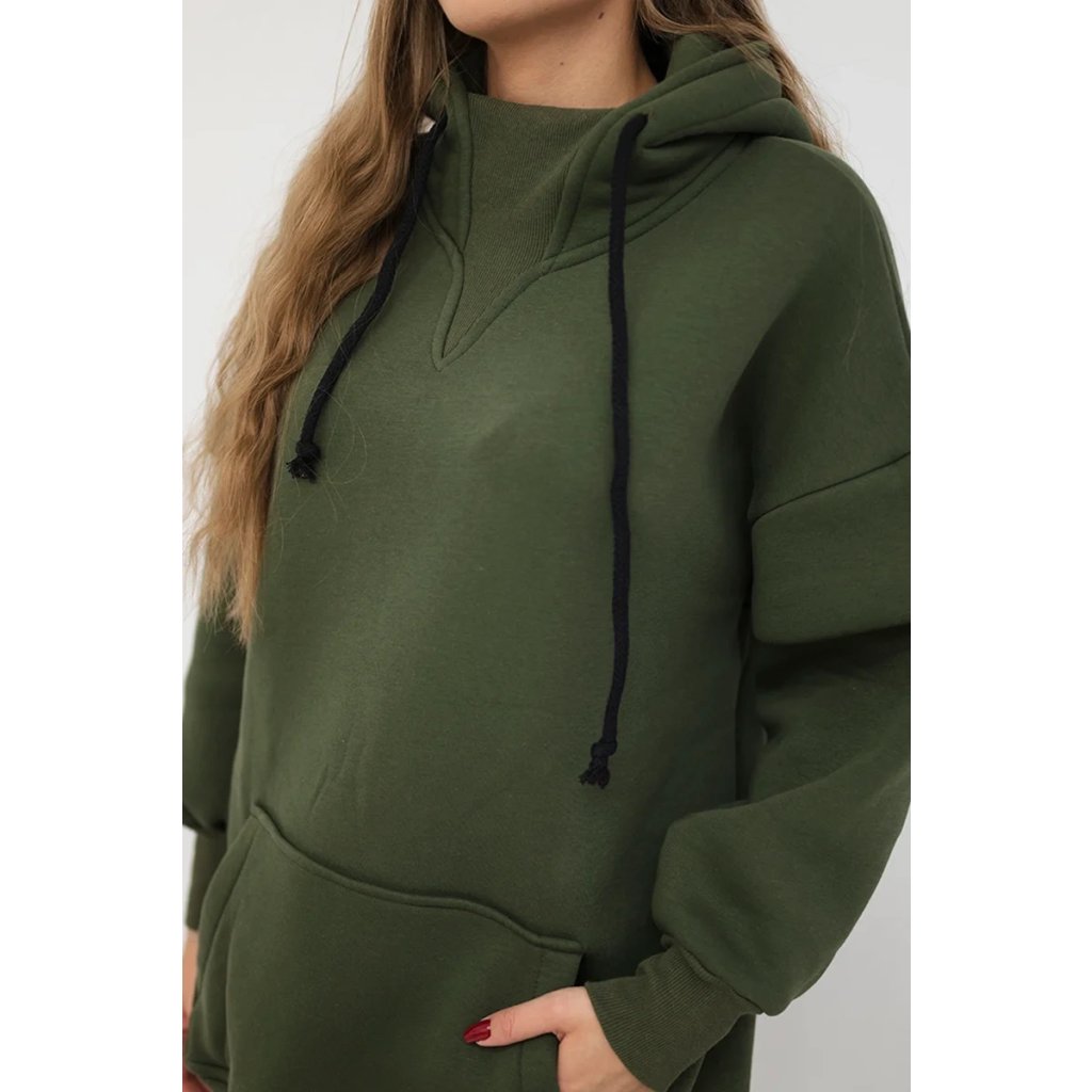 Predstavujeme vám zateplenú mikinu. Mikina má kapucňu a vrecko vpredu. Mikina je vyrobená zo zatepleného materiálu. Veľkosť je univerzálna a bude vhodná pre dámy nosiace veľkosť S, M alebo L.
