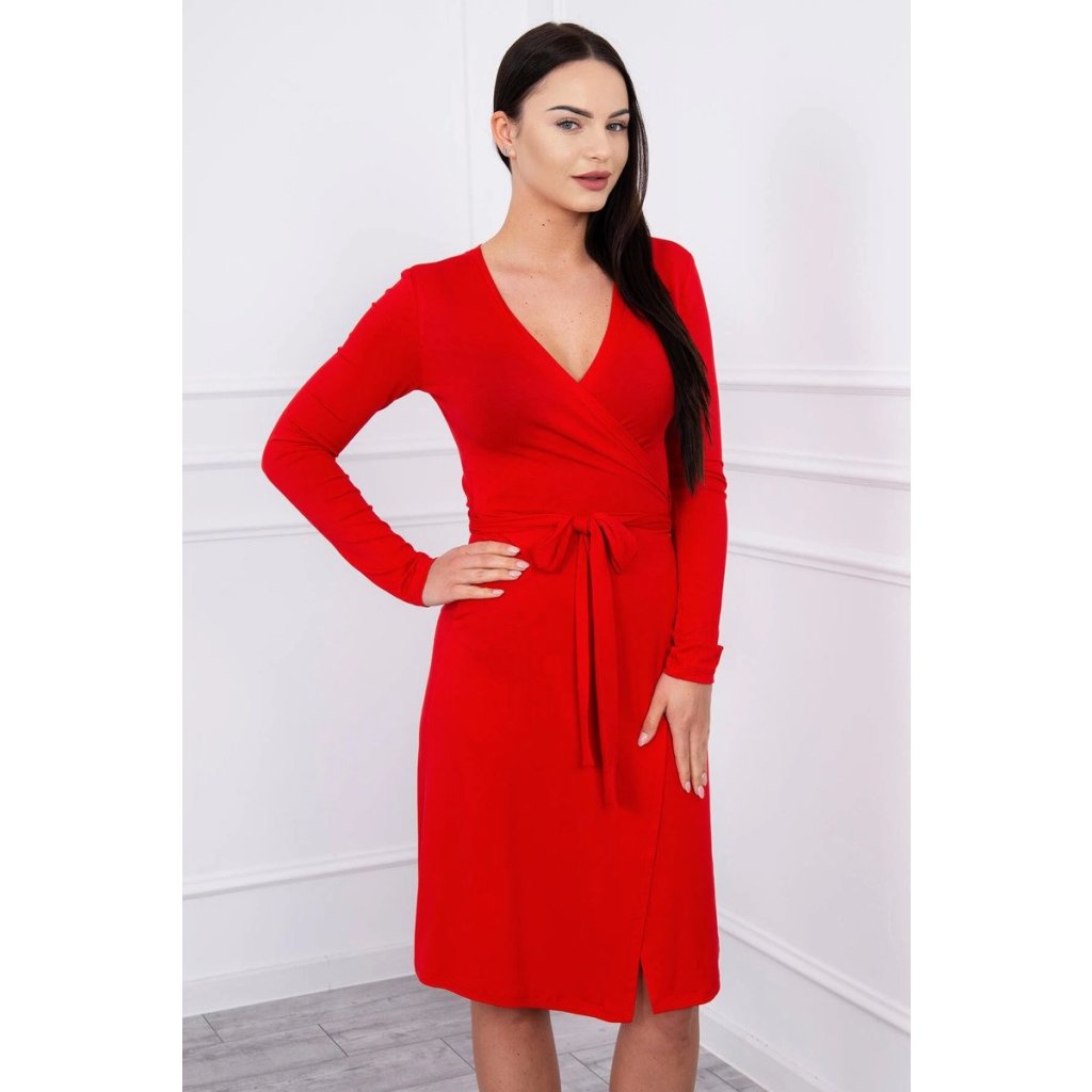 Zavinovacie šaty s viazaním v páse červené